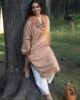 Inspired by the golden hues of falling Chinar leaves, this hand-embroidered piece captures the essence of Kashmiri autumn. Delicate paisley motifs in warm tones gracefully adorn the beige base, weaving together elegance, nostalgia, and the timeless charm of the valley.